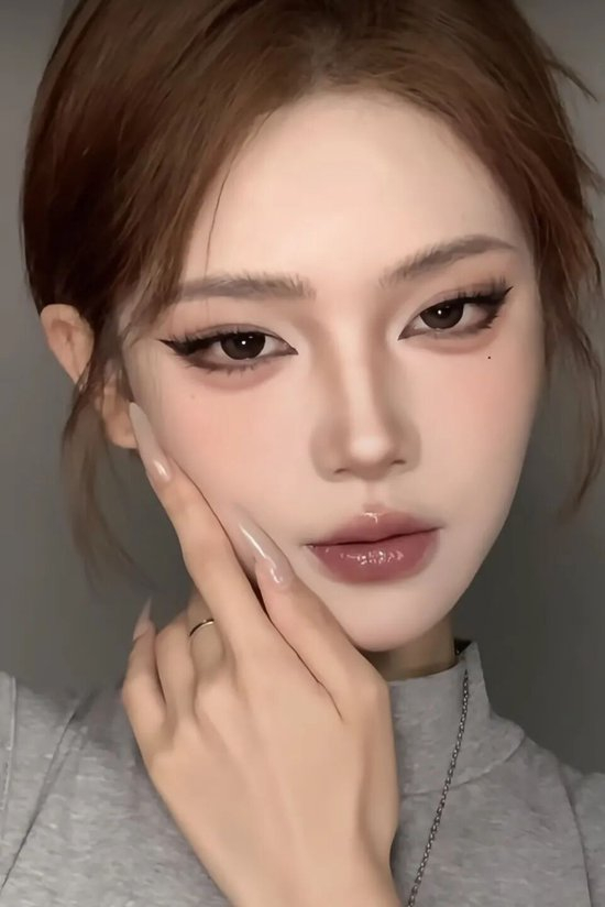 狐系睫毛建议使用前短后长结构——眼头8-9mm起步,眼中过渡到10-11mm,眼尾拉长至13-15mm并略微上扬。弧度推荐LC/LD,拉长眼尾又不会太夸张。